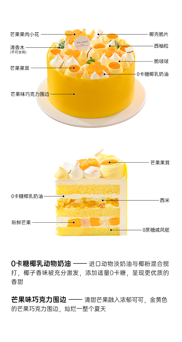 FALANC椰岛巴伐露芒果椰乳生日蛋糕