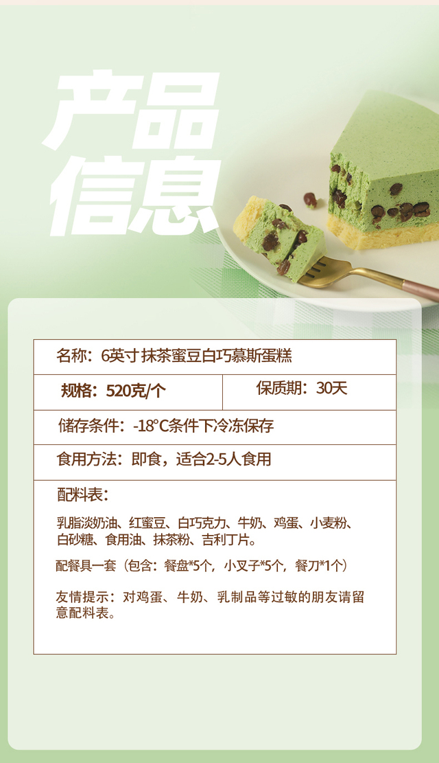 猫叔猫山王 6英寸抹茶蜜豆白巧慕斯+4英寸青柠芝士