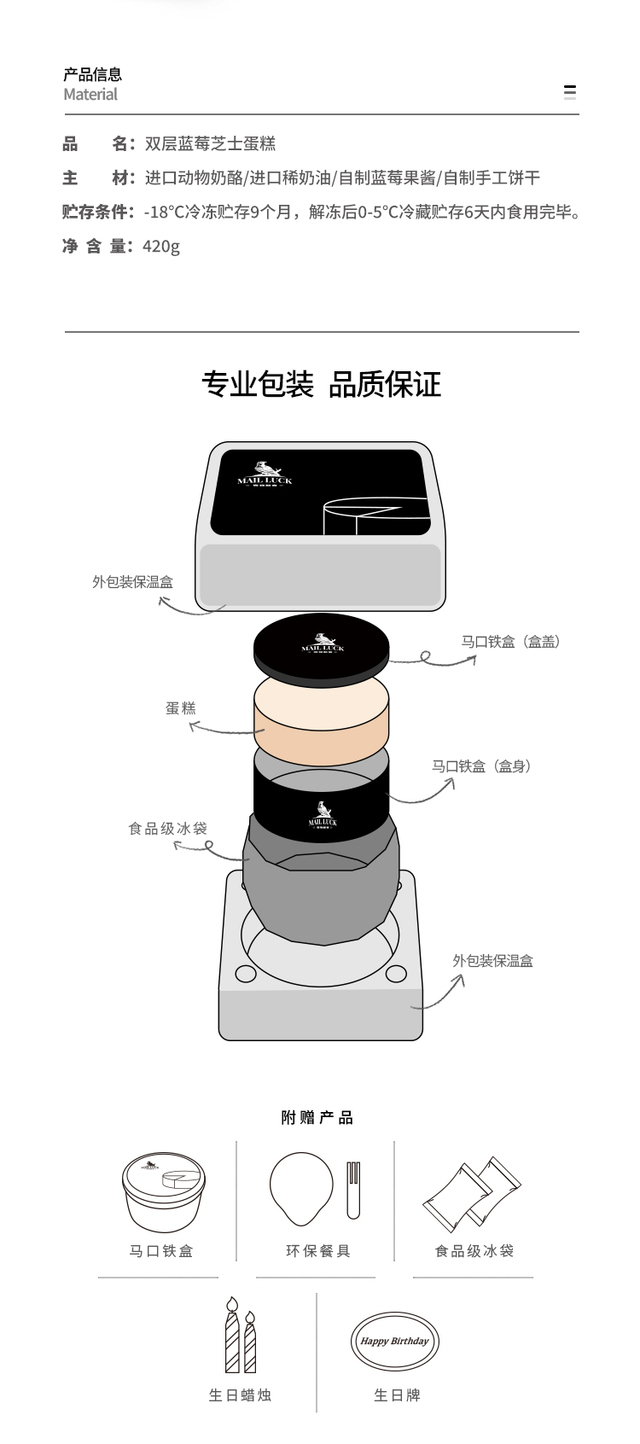 【麦物酪客】双层蓝莓芝士蛋糕(儿童限定款)420g