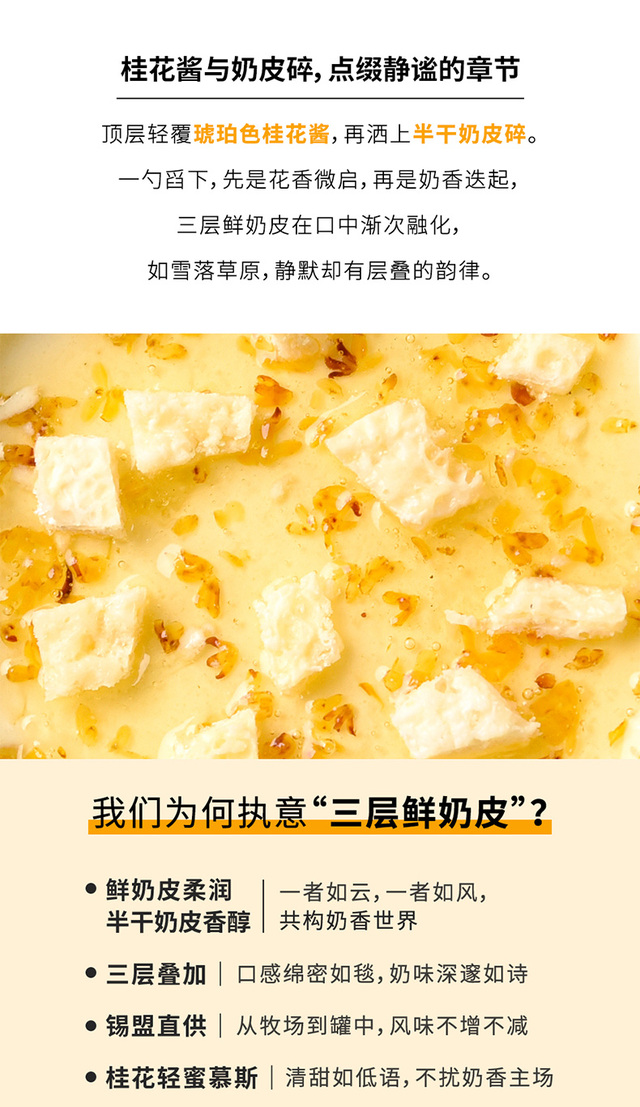 鲜奶皮子 稀奶油 水 奶酪制品 无水黄油 桂花酱 等