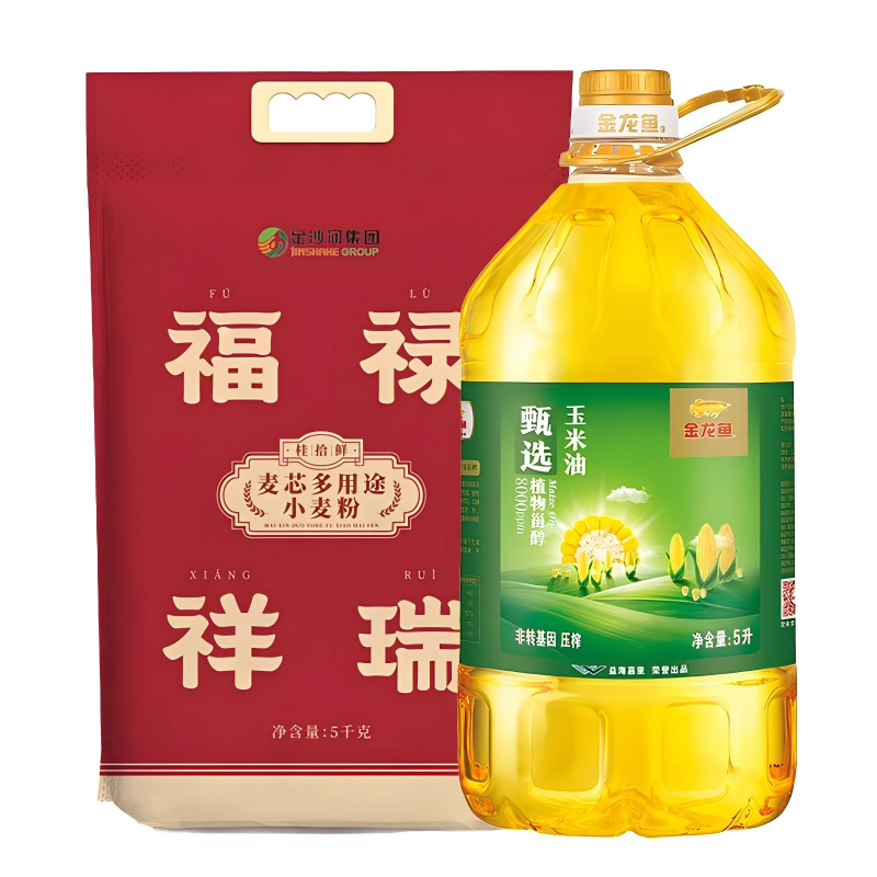 金龙鱼/金沙河/虾稻米甄选植物麦芯多用途小麦粉米油组合5kg+5kg+5L