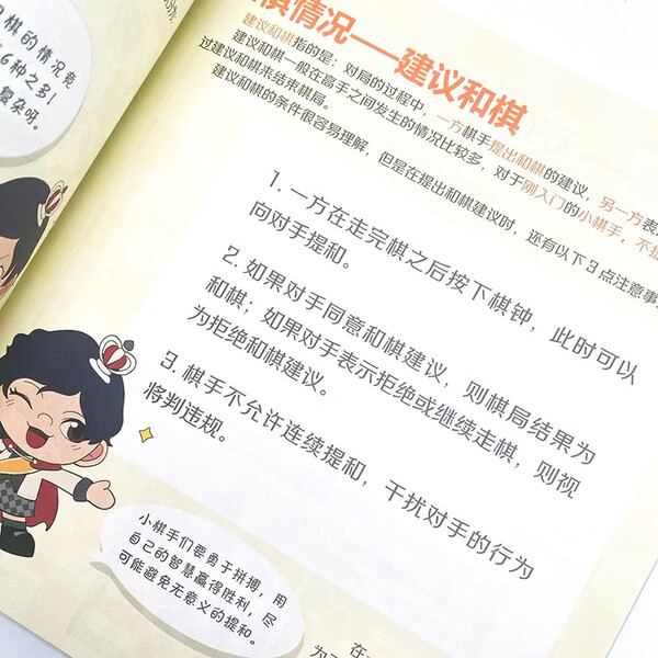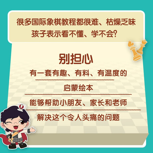 谢军少儿国际象棋启蒙绘本 由国际象棋女子世界冠 军谢军精心创作,是一套适合3~12岁孩子学习国际象棋、开发智力的精美绘本。本书通过简洁凝练的语言和生动活泼的插图,详细展示了国际象棋的起源、棋子的基本下法、棋谱的记录、基础的进攻与防守技巧、国际象棋的胜负判定、比赛中的计时方法等学会下国际象棋的知识点,以及棋德、棋品。书中还设置了与知识点高度匹配的思维游戏和***题,边学边练,有助于激发孩子的阅读兴趣并检验学习效果。
